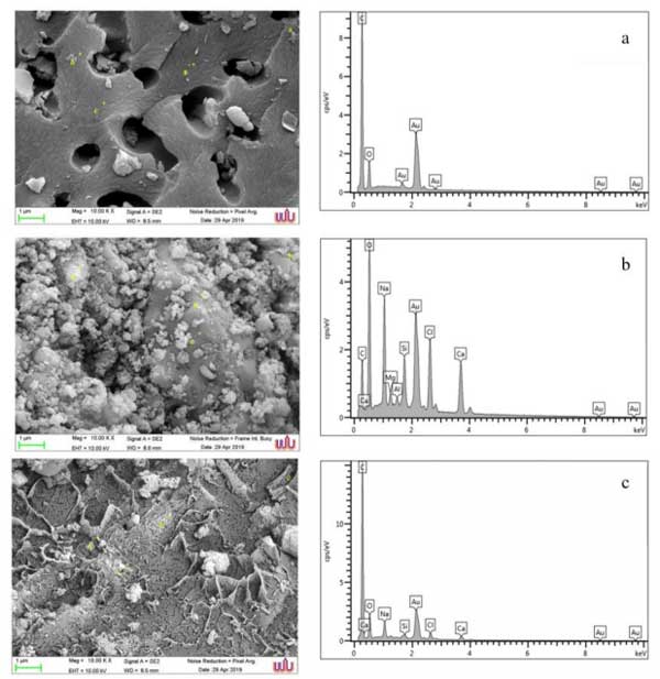將炭化生物質(zhì)與氯化鈉分別以1:0、1:1和1:2的比例混合,通過(guò)化學(xué)活化來(lái)制備活性炭,接著通過(guò)SEM-EDS和XRF分析來(lái)確定活性炭的形態(tài)(圖1),表明活性炭1:0具有多孔表面,但是在用氯化鈉活化后,檢測(cè)到高度光滑的織構(gòu);钚蕴康脑亟M成通過(guò)SEMEDS和XRF評(píng)估,選擇了三個(gè)典型點(diǎn)來(lái)檢查元素分析。顯然,活性炭1:0主要由碳(C)和氧(O)組成,其中C元素的含量為78.84wt%。至79.65wt%。O元素的含量為20.35wt%至21.16wt%。在活性炭上活化了不同的氯化鈉后,更換了元素。