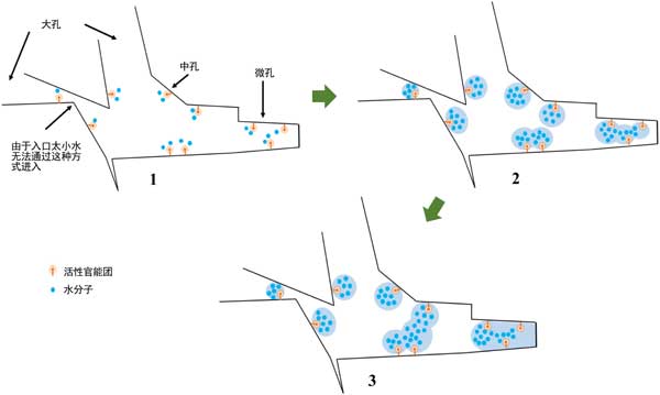 圖3:活性炭表面水蒸氣吸附機理。