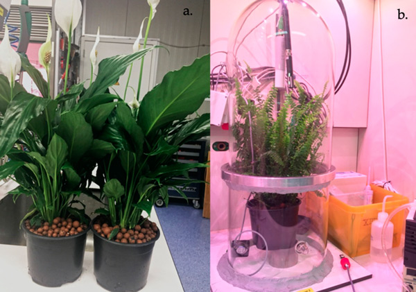 為測試選擇了三種不同的介質(zhì):活性炭和膨脹粘土、土壤。選定的植物盆栽土壤由泥炭、綠色堆肥、石灰和肥料組成;牡倪x擇基于之前的研究,因?yàn)樗鼈兪鞘袌錾铣R姷幕摹τ诿糠N類型的基材,進(jìn)行了六項(xiàng)測試:三項(xiàng)使用干基材,三項(xiàng)使用濕基材。將基板分別放入塑料容器中,即基板的暴露區(qū)域。測試了兩種不同的植物(圖1)。每種植物選擇3株進(jìn)行試驗(yàn),并選擇具有相似年齡和大小特征的植物。