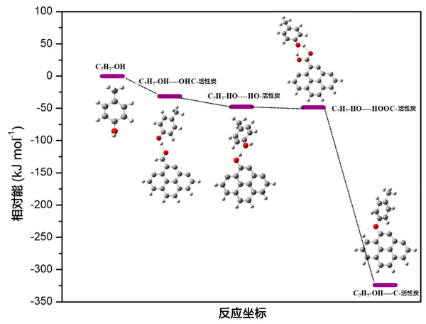 圖2:甲酚吸附到原始和功能化活性炭上的相對(duì)能量圖。