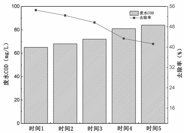 為了評估活性炭的可重復(fù)使用性,對活性炭進(jìn)行了吸附-解吸實(shí)驗(yàn)。經(jīng)過四個(gè)吸附-解吸循環(huán)后,活性炭吸附對焦化廢水中COD的吸附效率僅降低了約10%(圖3),表明活性炭具有良好的可重復(fù)使用性。此外,使用NaOH作為再生劑的方法具有成本效益高的優(yōu)點(diǎn)?傊,這些表明本研究中生產(chǎn)的活性炭在實(shí)際廢水處理中具有巨大的應(yīng)用潛力。
