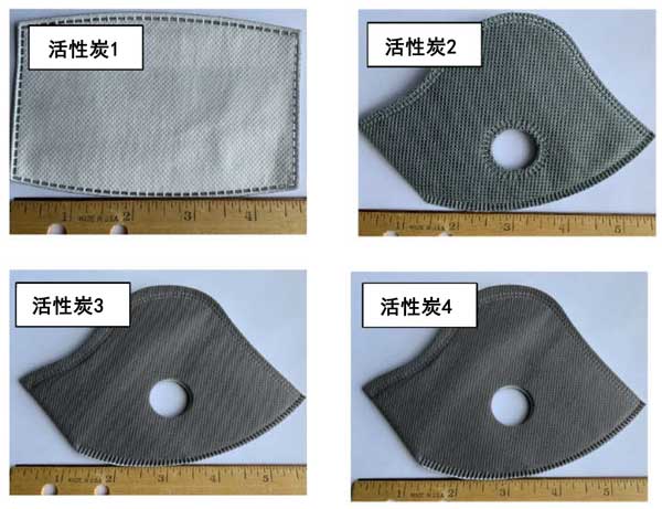 圖1:本研究使用了四種類(lèi)型的帶有活性炭層的面罩襯墊。每張圖片代表不同的濾芯。