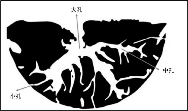 圖2:活性炭孔隙結(jié)構(gòu)示意圖。