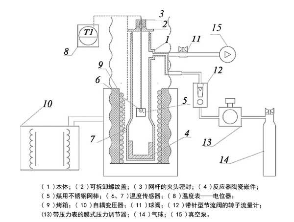我們使用了基于堿金屬氟化物的低共熔混合物,其組成為mol%:LiF(46.5)–NaF(11.5)–KF(42.0)(FLiNaK)。其質(zhì)量通過導(dǎo)數(shù)儀的熔化溫度(Tm=454℃)檢查。前面詳細(xì)描述了使用FLiNaK的活性炭進(jìn)行吸附的設(shè)置方案。將干燥的活性炭置于帶孔的特殊金屬銅籃中,并浸入熔鹽中。實驗在650℃靜態(tài)條件下進(jìn)行,吸附時間為1.5h。裝有活性炭的籃子定期進(jìn)行垂直平移運動,使鹽與碳混合。取下籃子后,檢測碳鹽共晶中目標(biāo)元素的含量。Th、U和Nd的濃度通過以下程序分析。含有碳和低共熔物的樣品用硫酸處理以去除HF。然后,在蒸發(fā)后,將它們用水稀釋,并根據(jù)程序使用分光光度計在650nm的波長下使用鹽酸中的偶氮砷III進(jìn)行分析。活性炭在富集金屬鈉之前,為了增加其表面對金屬的親和力,在200℃的空氣中進(jìn)行干燥,在真空和600℃的惰性氣體中進(jìn)行熱處理。通過圖1所示的裝置制備富含金屬鈉的活性炭樣品。