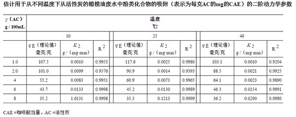 橄欖油廢水中酚類化合物處理由大多都由活性炭來吸附,本期帶大家了解活性炭的吸附劑量和溫度的影響。在最佳條件下(每100毫升8克活性炭),每克活性炭表示當(dāng)量mg的活性炭的最大吸附容量為10.8℃時(shí)為35.8℃,25℃為35.4℃,40℃時(shí)為36.1℃ C。偽二階模型被認(rèn)為是最適合于動(dòng)力學(xué)結(jié)果,并且選擇Langmuir等溫線來更好地描述吸附系統(tǒng)。結(jié)果證實(shí)了活性炭從橄欖油流出物中幾乎除去所有酚類化合物部分的效率。