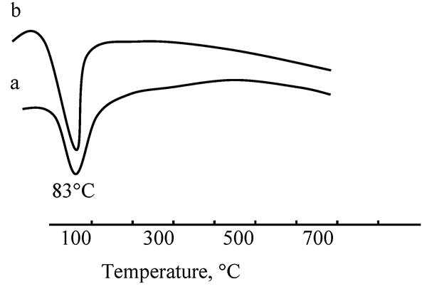 利用DTA技術(shù)研究了煅燒過程中催化劑的性質(zhì)變化。圖1顯示了煅燒和干燥活性炭載體的DTA曲線。兩個(gè)樣品在83℃附近只有一個(gè)吸熱峰。該峰對吸附水的解吸有貢獻(xiàn)?紤]到活性炭是具有極高容量和高吸附速率的優(yōu)異吸附劑的事實(shí),甚至在樣品干燥或煅燒之后峰值出現(xiàn)也就不足為奇了。兩種樣品的DTA曲線沒有明顯差異,表明煅燒對載體的熱性質(zhì)基本上沒有影響。