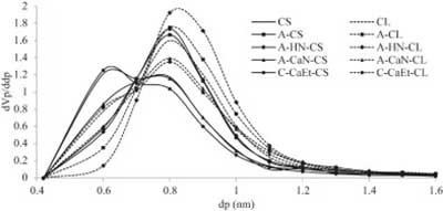 下圖顯示了改性活性炭的微孔尺寸分布。隨著孔隙變寬,椰殼活性炭的平均孔徑由于HNO 3而增加,而Ca(NO 3)2則減少。然而,煅燒表現(xiàn)出最大的孔徑減小,因為 形成平均尺寸為0.4nm的更窄的微孔。煅燒樣品顯示在比那些胺化Ca的碳的微孔更好的改善(NO 3)2,其可有效地提高二氧化碳物理吸附。這可能是由于在相鄰孔壁上形成更多的CaO,導致孔隙空間減少。
