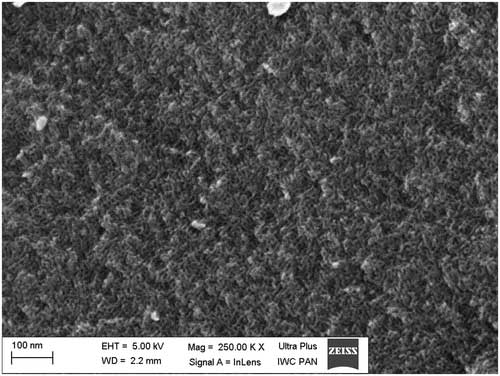 采用檸檬酸應(yīng)用合成方法,通過軟模板法獲得活性炭 。在實驗的低溫(-196℃)氮吸附-解吸等溫線的基礎(chǔ)上確定了表征所研究活性炭的介孔結(jié)構(gòu)的基本標準參數(shù)。對于獲得的活性炭圖像,使用掃描電子顯微鏡(SEM),發(fā)現(xiàn)活性炭材料具有有序的,均勻的多孔結(jié)構(gòu),中孔尺寸約6nm(圖1)。