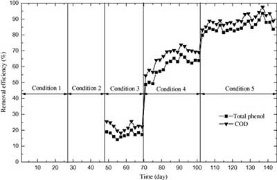 注:粗苯酚,苯酚,乙酸鈉,分析等級的NH 4 Cl 組成的合成廢水1(SW1)。廢水2(SW2),具有432苯酚 毫克/升,NH 4 550氯 mg / L的(144 毫克NH 3 -N / L)和NaHCO 3的1728 毫克/ L(20.60 mM / L)。