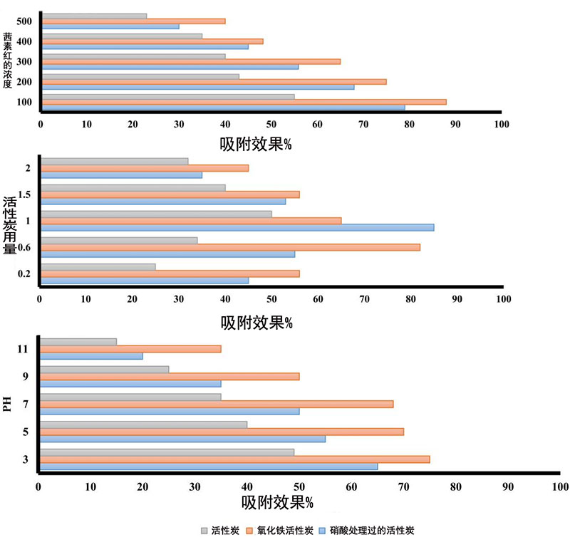 活性炭對茜素紅的吸附,本期我們使用三種類型的活性炭吸附劑來對茜素紅進(jìn)行吸附實(shí)驗(yàn),經(jīng)處理的活性炭和氧化鐵活性炭納米復(fù)合材料。吸附實(shí)驗(yàn)在分批條件下進(jìn)行。氧化鐵活性炭的pH值是6.7。其結(jié)果是,越低于pH值零電荷點(diǎn)越低,pH顯示酸性時,氧化鐵活性炭對茜素紅的吸附是良好的。后面的吸附數(shù)據(jù)在我們實(shí)驗(yàn)中來呈現(xiàn)。