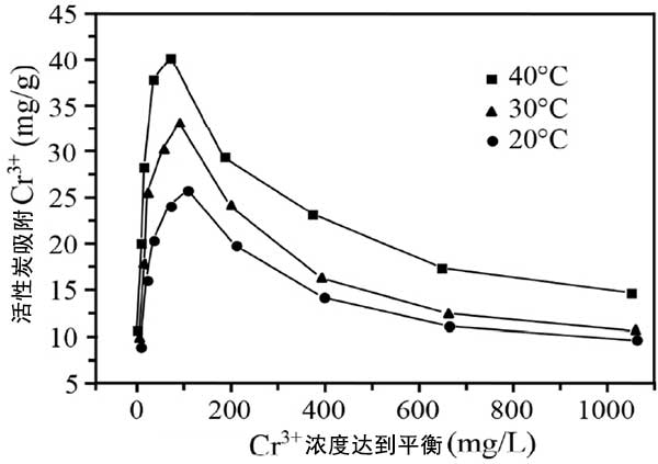 2、已經(jīng)確定,活性炭在20、30和40℃下的鉻吸附等溫線具有取決于平衡濃度的不規(guī)則形狀。三條曲線顯示出類似的趨勢(shì),陽離子攝取量的初始增加非?臁__(dá)到最大值后,隨著平衡溶液中鞣劑含量的增加,它們明顯降低。