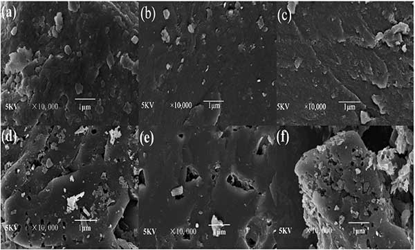 從表面形態(tài)分析不同煤和活性炭的SEM圖像如圖2所示。它表明三種活性炭的表面相對(duì)光滑,沒有任何毛孔,除了偶爾的裂縫。在活化后,三個(gè)活性炭的外表面都顯示出不規(guī)則的孔;钚蕴康谋砻嫦鄬(duì)粗糙并且表現(xiàn)出更多的孔。而具有低灰分和揮發(fā)性物質(zhì)含量的炭2顯示出相當(dāng)光滑的表面?赡苁窃跉饣^程中形成的金屬鉀可以擴(kuò)散到碳基質(zhì)的內(nèi)部結(jié)構(gòu)中,從而擴(kuò)大現(xiàn)有的孔隙并產(chǎn)生新的孔隙。