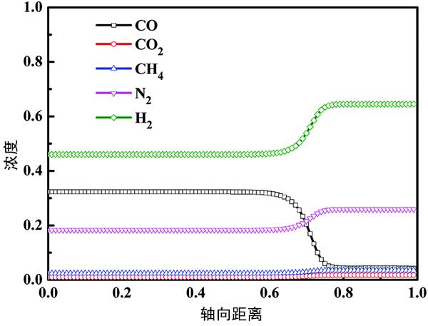 活性炭吸附步驟后CO,CO 2,CH 4,N 2和H 2的軸向濃度分布在圖4標記。可以看出,活性炭吸附步驟后,Z/H=0.00-0.60的吸附床達到飽和,CO,CO 2,CH 4,N 2和H 2的濃度不隨軸向距離變化床的一部分,與進料氣中各組分的濃度一致。并且在Z/H的不飽和吸附床中>0.60,隨著床軸距的增加,CO濃度逐漸降低,其他成分濃度逐漸增加。最后,所有組分的濃度趨于穩(wěn)定。