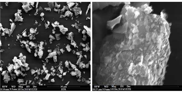 SEM分析:圖1中所示的合成的活性炭粉末的掃描電子顯微鏡(SEM)圖像清楚地顯示其高度多孔和不均勻的形態(tài),平均顆粒尺寸為6.7μm。