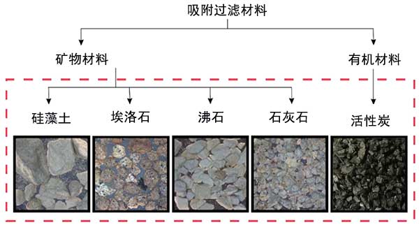 在分析中使用活性炭和未經(jīng)修飾的礦物材料,例如沸石,石灰石砂,硅藻土和埃洛石(圖1)。礦物材料是不經(jīng)受預(yù)處理,以確保使用最經(jīng)濟(jì)上有利的材料。本期使用的活性炭是一種微孔材料,由微孔表面和體積值和相對(duì)較低的中孔表面值證明該材料的表面。硅藻土,沸石和埃洛石是中孔材料,因此其特征在于具有中間孔的平均比表面積,所述中孔具有不規(guī)則尺寸和形狀的窄裂縫形狀。在埃洛石中觀察到這些礦物中介孔的大比表面積和體積,而硅藻土的孔隙比較少,石灰石砂可歸類(lèi)為無(wú)孔材料。