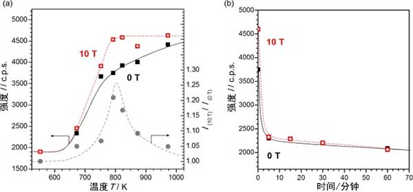 我們對(duì)煤焦油瀝青的碳化處理,在各溫度下和不存在和存在磁場的情況下制備的活性炭的XRD峰強(qiáng)度繪制在圖1(a)中。能觀察到大磁場效應(yīng),對(duì)于用穩(wěn)定化制備的普通活性炭前體,不可能獲得磁場效應(yīng)。該結(jié)果通過在氧化氣體中熱處理期間在碳材料中形成的氧交聯(lián)結(jié)構(gòu)來解釋,通過穩(wěn)定化形成氧交聯(lián)結(jié)構(gòu)不僅導(dǎo)致碳化的抑制,而且使得液晶樣行為變得不可能。這被認(rèn)為是沒有出現(xiàn)磁場效應(yīng)的原因。為了闡明交聯(lián)結(jié)構(gòu)形成所需的時(shí)間,在碳化之前進(jìn)行穩(wěn)定化,時(shí)間從0到120分鐘變化。此處,0分鐘以外的制備方法基于制備活性炭前體的一般方法。XRD峰強(qiáng)度相對(duì)于穩(wěn)定如圖1(b)所示。無論是否存在磁場,在碳化之前穩(wěn)定5分鐘后衍射急劇減少。在氧化條件下,無論是否存在磁場,都進(jìn)行交聯(lián)。