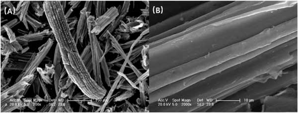 原材料用去離子水沖洗并干燥。然后在破碎機中破碎。重復破碎后,將破碎的原材料堆通過50和100目篩。將篩過的原材料粉末在氮氣氣氛下在不同溫度(300.0 °C至1000.0 °C)下煅燒。加熱速度為5.0 ℃ min -1,目標溫度維持 180min。溫度上升后;然后將樣品自然冷卻至室溫。將烘干的活性炭浸入10%的鹽酸中12 h,用水洗滌3次,并在100.0 °C下干燥6 h制成。研發(fā)的活性炭與商業(yè)活性炭相比,具有更高的表面積和孔體積。圖1 顯示了活性炭的掃描電子顯微照片。由于高溫煅燒,活性炭具有不規(guī)則的棒狀結構,在其表面上具有皺紋,這提供了較大的表面積并增加了活性炭表面的吸附位置。