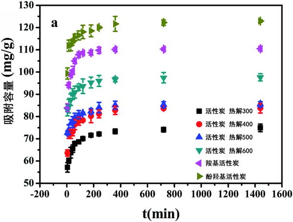 圖2:CBD吸附接觸時(shí)間對活性炭的影響。