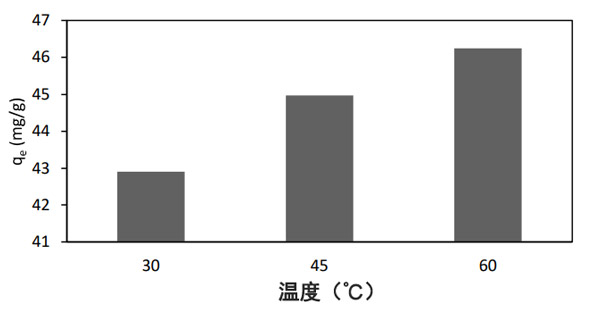 圖3:溶液溫度對活性炭吸附容量的影響。