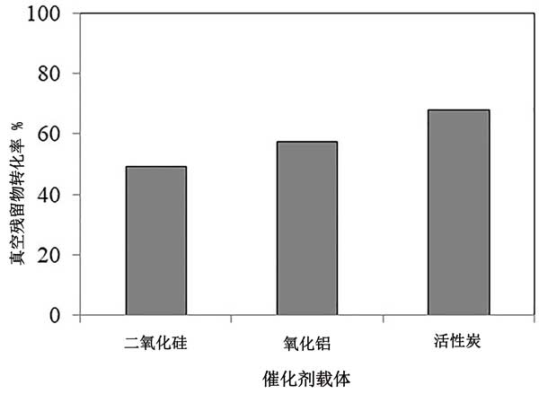 用活性炭,二氧化硅和中孔氧化鋁載體制備加氫處理催化劑,并在410°C的溫度和10MPa的壓力下進(jìn)行真空殘留物加氫處理反應(yīng)的測(cè)試。對(duì)比性能顯示,盡管二氧化硅負(fù)載的催化劑具有非常高的表面積,但由于其較低的孔徑,它在殘?jiān)豳|(zhì)過(guò)程中極易形成焦炭。反過(guò)來(lái),這導(dǎo)致轉(zhuǎn)化率低和液體產(chǎn)品收率低。與二氧化硅負(fù)載的催化劑相比,活性炭負(fù)載的催化劑表現(xiàn)出更高的轉(zhuǎn)化率。原因之一是活性炭的孔徑分布比二氧化硅高;钚蕴看呋瘎┑挠行钥蓺w因于其較大的孔徑,較高的孔體積以及活性金屬的較好分散性。這些對(duì)于殘余物加氫處理催化劑是有利的性質(zhì)。